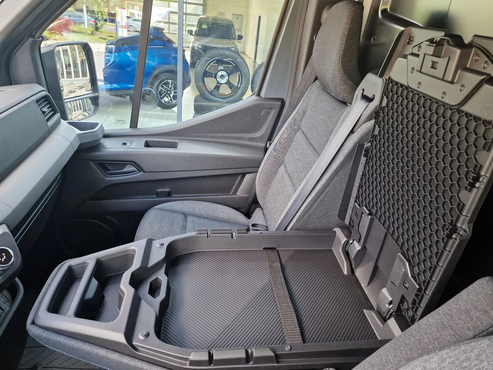 - Oparcie środkowego fotela ławki po stronie pasażera składne w „mobilne biuro”
